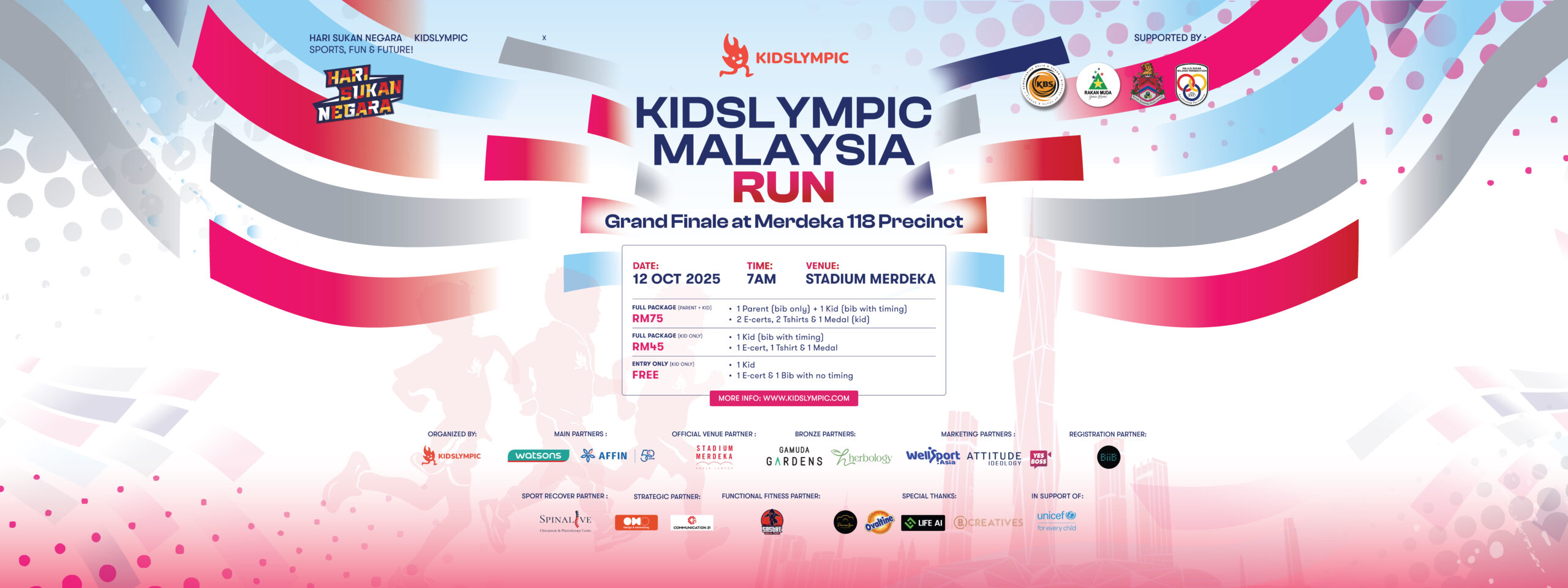 Kidslympic Run will be held across various states in Malaysia, such as Kuala Lumpur, Melaka, Penang, and Johor.